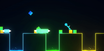 Create a beat by throwing the boxes to its correct color lava and gain a point, if you miss match the color, you'll be deducted a point and attacked with a fast-moving spike. In general spikes will be generated at random and you have to avoid them.